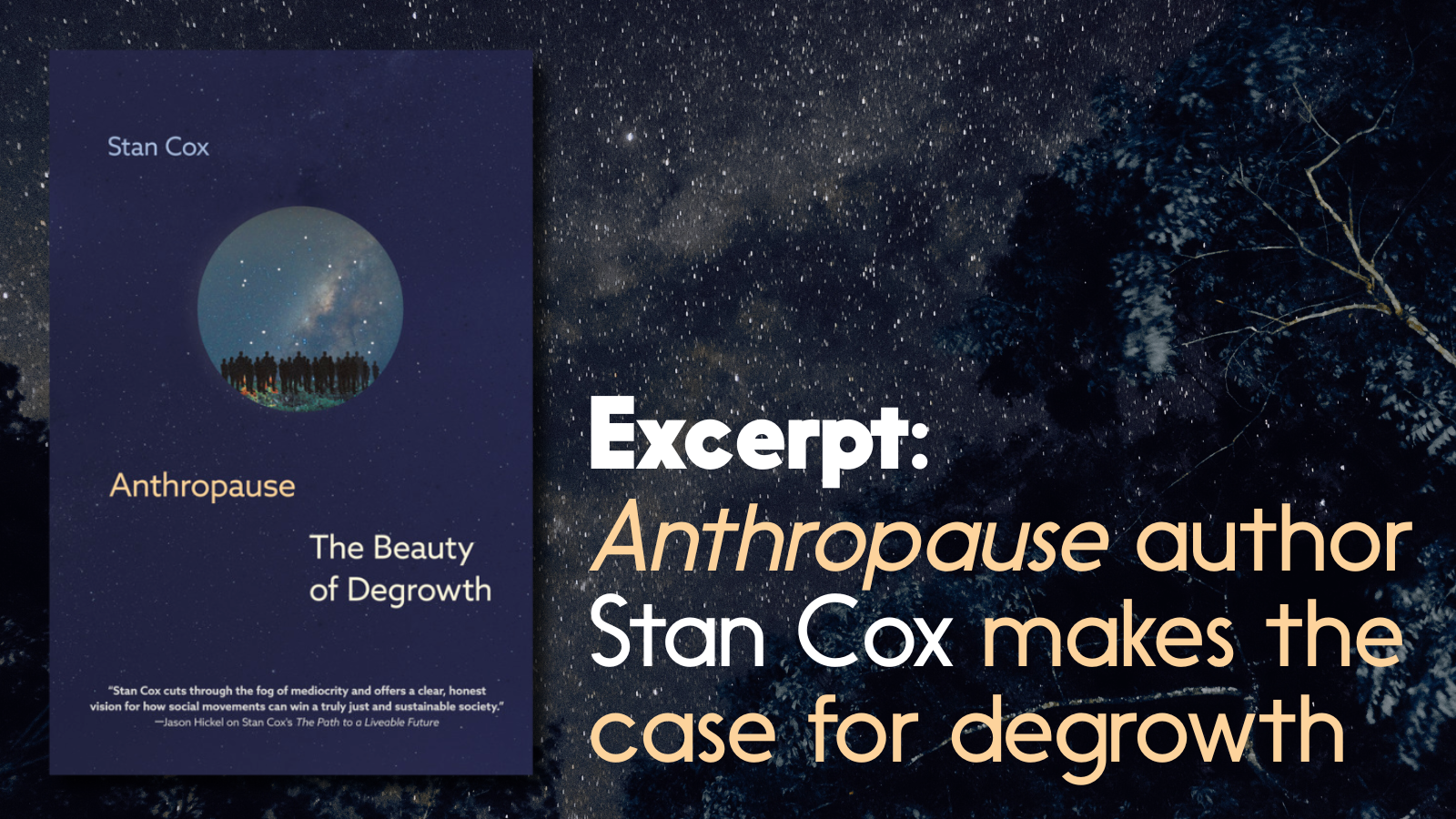 "To celebrate the launch of Anthropause: The Beauty of Degrowth, a new book by environmentalist and former Land Institute fellow Stan Cox, we’ve unlocked a portion of the introductory chapter. In the book, Cox makes the case for embracing degrowth, posing it not only as a means for preventing climate collapse but also for our collective emancipation from other systemic ills. He writes that “we can free ourselves from the growth economy and its many harmful impacts by seeing true wealth as the collective pursuit of meaning, social justice, and beauty while living within ecological limits.” As you read these passages, we invite you to imagine what a degrowth future might look like for you and your community." —Irina Costache, assistant publicist